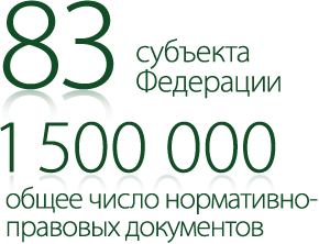 В настоящее время в соответствии с Конституцией РФ в составе Российской Федерации находится 83 субъекта. В системах «Кодекс» по каждому субъекту РФ представлен отдельный информационный продукт регионального законодательства.